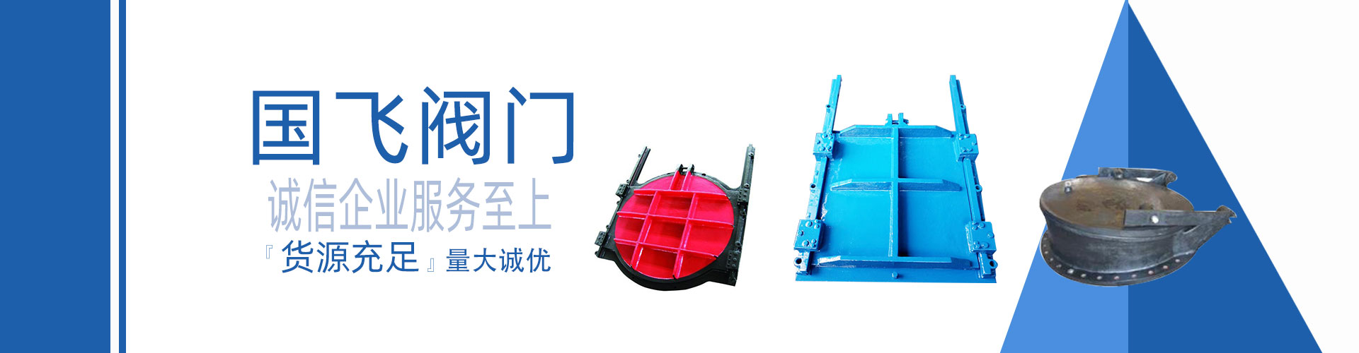浙江國飛閥門科技有限公司坐落于擁有中國閥門之都”美稱的永嘉甌北,是集中開發(fā)、設計、制造、銷售為一體的科技型企業(yè),現(xiàn)主要生產(chǎn)的產(chǎn)品有污水處理閥,不銹鋼渠道閘門、不銹鋼拍門、錐形閥、鑄鐵鑲銅閘門、電動通風蝶閥、泄爆閥,配水閘閥,套套閥,浮筒閥,插板閥,電磁閥,燃氣緊急切斷閥,不銹鋼電磁閥,高爐煤氣閥、電力閥、石化閥配套和特種非標閥等10大類;產(chǎn)品廣泛應用于石油、化工、冶金、建材、市政環(huán)保、制藥、電力等行業(yè)。